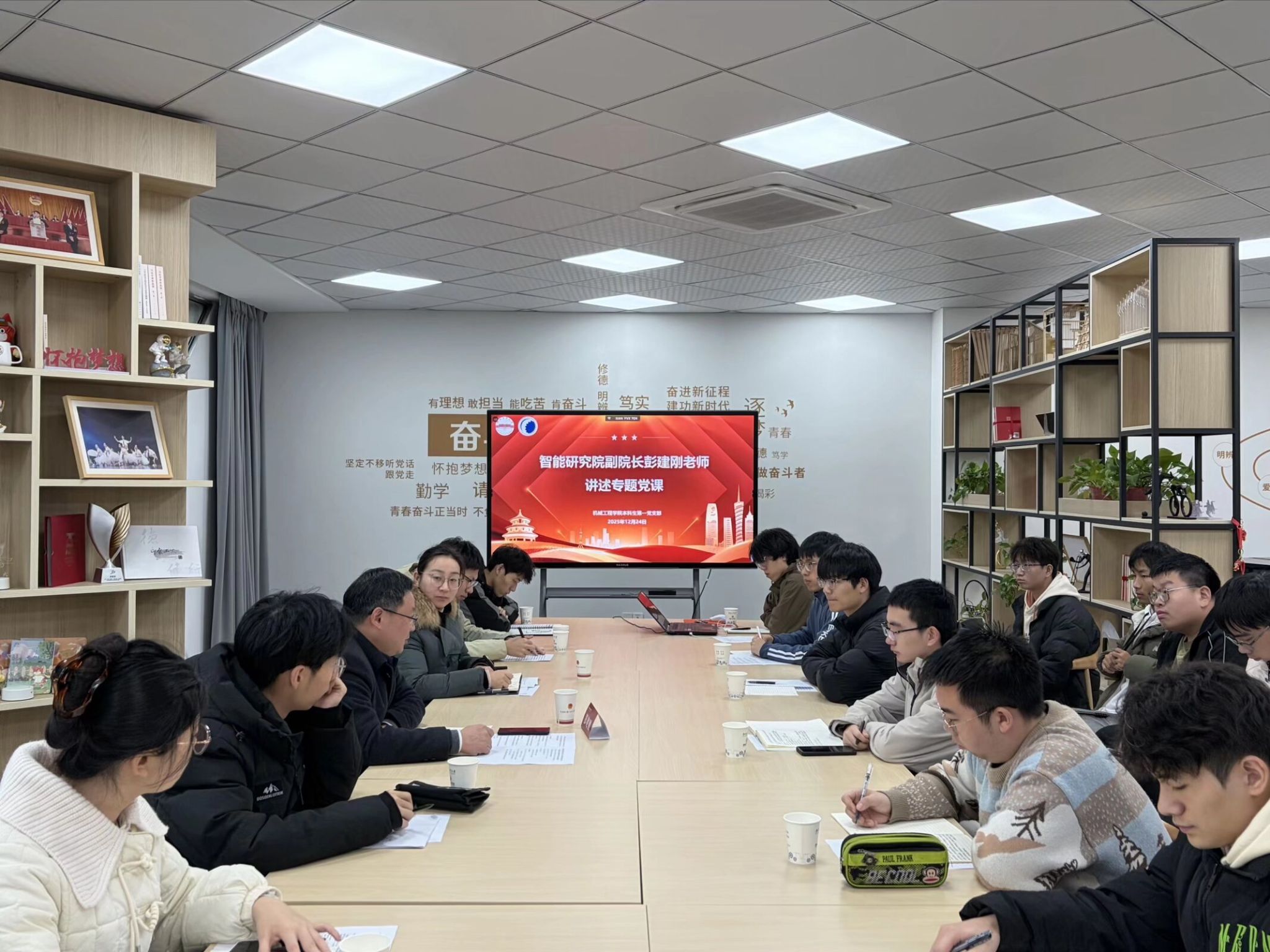 为深入学习贯彻习近平总书记关于党性的重要论述,切实发挥党员领导干部联系基层作用,推动学校事业高质量发展,12月24日下午,yL23411永利官网登录本科生第一党支部在校团委青年之家开展党员领导干部联系基层党支部暨学习研讨交流活动。智能研究院副院长彭建刚、本科生第一党支部全体党员参加活动。