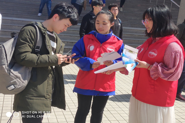 12日中午,志愿者们早早的来到翡翠湖校区一食堂活动广场,向来往的同学们宣传有关植树节的有关知识及绿色环保的重要性。同学们也对即将举办的校园植树活动充满了兴趣,积极向志愿者们询问有关事项,并踊跃报名参加。同时志愿者们向同学们推荐通过网络APP植树的途径,旨在鼓励同学积极参与线上线下的植树活动,为共建美丽家园奉献自己的一份力量。