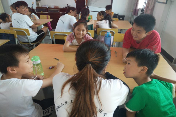 三位主讲人讲述结束后,调研团队将小朋友们分成若干小组,每位成员开始与一组小朋友们进行近距离的交流,不仅为他们讲述调研的经历和收集到的故事,还鼓励小朋友们自己讲出自己知道的红色小故事,与大家分享,并说出自己的感受。在团队成员的鼓励下,小朋友们放下羞涩,积极的讲述着自己从长辈那里,从书中得知的故事,神采飞扬,为岳西本土的英雄们英勇的行为自豪不已。