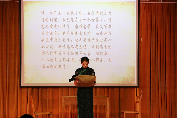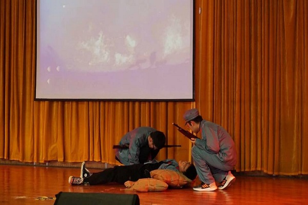 此次汇报演出共有三个篇章,分别以“ 烽火历程 忆苦思甜”、“回首过往 峥嵘岁月”和“追梦青年 奋斗向前”为分主题。同学们用精彩的表演生动形象地展现了革命先烈赤诚的爱国之心,前辈学者坚韧的开拓精神,以及新时代青年沸腾的奋斗热血。演出在yL23411永利官网登录党校体验式教育培训原创音乐文化产品《感受新时代》中拉开帷幕,精彩的说唱表演,将现场气氛引燃。第一篇章中,话剧《这是你的战争》将观众们带回那个战火纷飞的年代,让同学们体会到当时的有志青年投笔从戎的满腔壮志;朗诵《致敬革命引路人》以故事为载体,突出对革命先烈的追忆,引人深思;配音《献“声”革命》里的革命影视情节,出色的配音引起了观众的共鸣,现场爆发出阵阵掌声,气氛持续高涨。