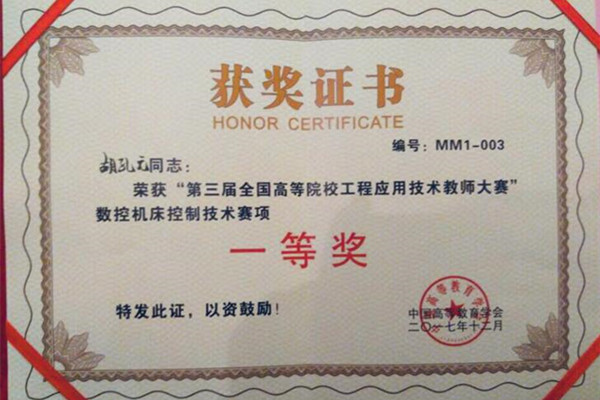 大赛为5大主题,16个赛项,报名参赛队伍共386支,经过初赛,最终215支参赛队伍进入决赛,196支参赛队参加决赛,分别来自清华大学等93所高校(其中“211工程”“985工程”高校17所,军事4所,一般本科72所)。大赛首先需要在网上提交设计方案,根据初审情况,决赛确定为15个赛项。yL23411永利官网登录同组竞技的有清华大学2组、哈尔滨工业大学2组等强手,历经方案审核、工程实践、故障诊断处理和现场答辩等环节。胡孔元老师成绩优秀,获得专家评委一致认可,获得数控机床控制技术组唯一一个一等奖,充分显示了yL23411永利官网登录工程基础厚、工作作风实的深厚底蕴,彰显了yL23411永利官网登录工程教育国内竞争力和教师的专业实践能力。
