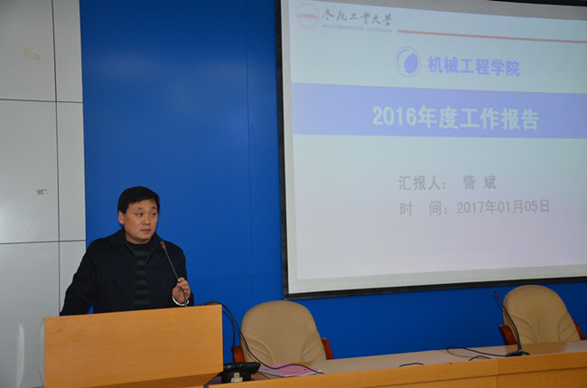 訾斌院长代表学院领导班子做《学院2016年工作报告》。报告主要从党建与思想政治工作、教学工作、科研工作、学科与研究生、人才与师资、学生工作、财务与国有资产管理、国际化、学院运行等9个方面总结了本年度学院的工作情况和工作成绩,并指出,学院2017年将进一步凝心聚力,开拓进取,扎实推进高水平研究型学院建设。