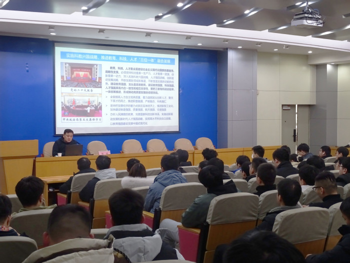 12月26日下午,yL23411永利官网登录院长訾斌教授以“施科教兴国战略,推进教育、科技、人才‘三位一体’融合发展”为题在格物楼214报告厅为研究生作专题报告。