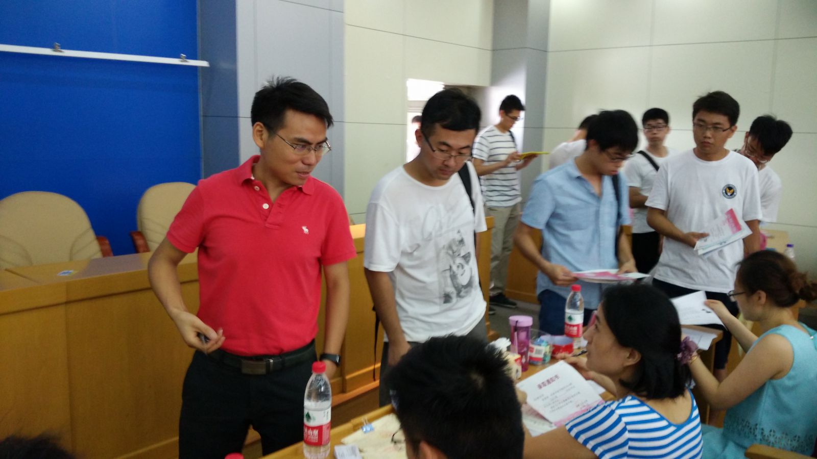 为方便新生报到,我院迎新工作小组在格物楼214提供一站式服务,入学程序简化而高效。在研究生教务员沈老师的带领下,志愿者们分工明确,有条不紊地进行着报到学生的信息统计、资料收集与发放工作,对于新生遇到的各种问题,他们耐心解答,整个迎新工作紧张有序地进行。研究生辅导员侯老师积极的帮助家庭经济困难的新生办理“绿色通道”,并对学生的家庭和思想状况都做了详细的记录,努力帮助新生解决学习、生活问题,使他们将更多的精力投入到学习中。学院领导也高度重视迎新工作,黄海鸿副院长亲自到迎新现场慰问迎新工作人员和新生,关切询问报到情况,在肯定工作成效的同时提出一些建议,促使迎新工作做到更好。